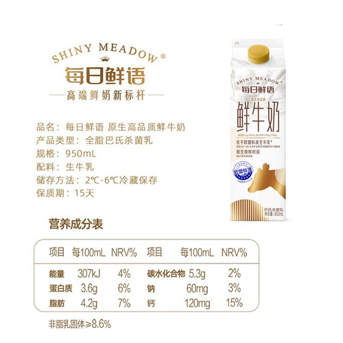 每日鲜语 高钙鲜牛奶