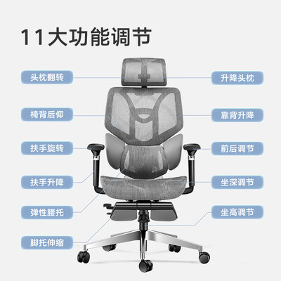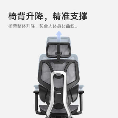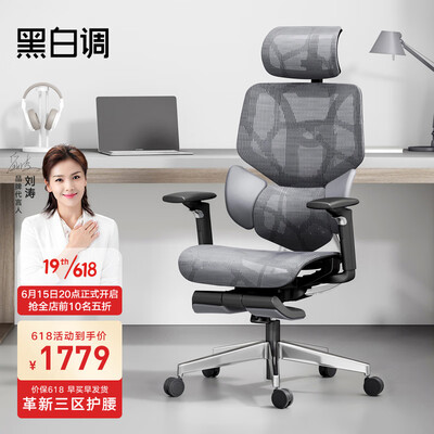 黑白调这款电脑椅采用三区护腰设计,将单片平角腰托升级为三区曲度包裹腰托,环抱贴合支持,缓解腰椎及腰侧肌肉的压力。