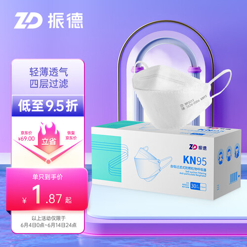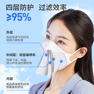 四层防护kn95口罩,鱼型设计,贴合亚洲人脸型。配以双层熔喷布,过滤率≥95%;独特的3D立体防护,可给予更多呼吸空间,不易花妆。