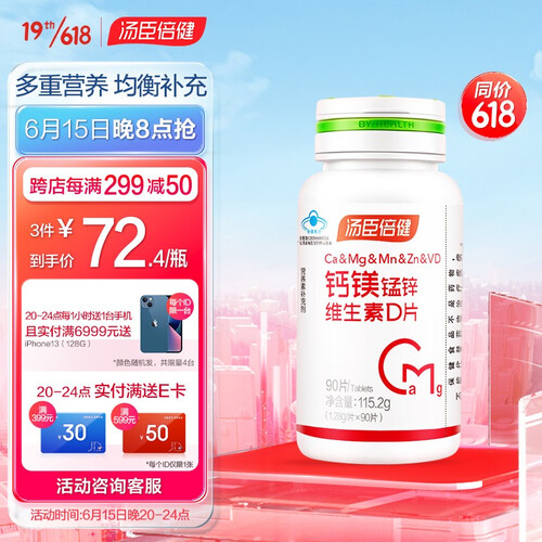 钙镁锰锌搭配vd3,多方位促进身体发育。每片含钙230mg、锌5.2mg,符合人体所需。通过蓝帽认证,品质有保障。