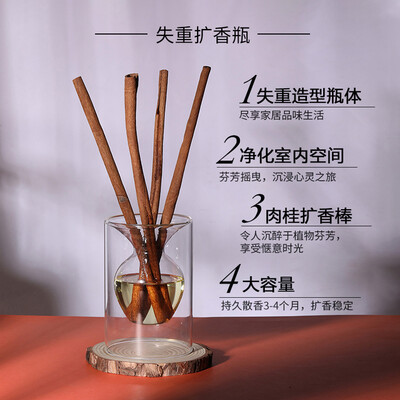 失重造型瓶身,高颜值高品质。肉桂扩香棒,扩香力强,香味持久,令人沉醉植物芬芳。大容量,持久散香3到4个月不是问题,扩香稳定。