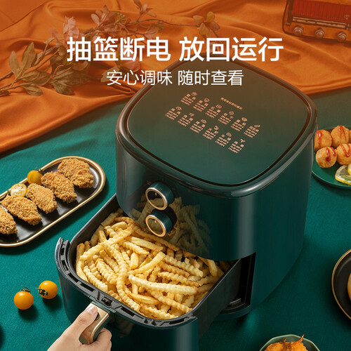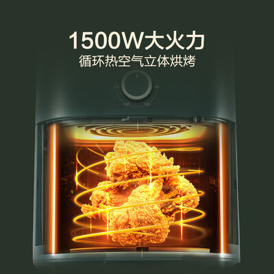 双旋钮控温设计,轻松解锁更多料理花样。1500W大火力,立体循环烘烤,告别传统炸物油腻感。5L大容量,能够满足3—6人的食量。