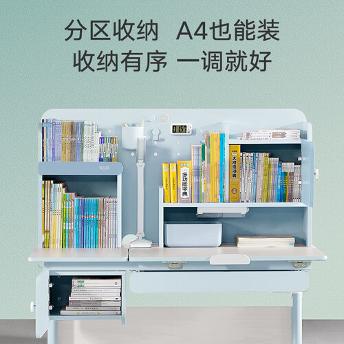分区收纳一目了然,小物件随取随用,预留走线孔,电源线从后面走,保证桌面整洁。6cm坐深调节,紧贴背部,避免弯腰驼背。