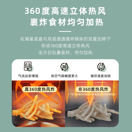煎、炸、烘、烤,一机多用,满足不同美食需求。均匀加热,保持好口味,无需担心食物外焦里生。LED触控界面,操作简单。