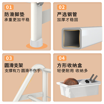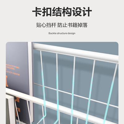 卡扣结构设计,贴心挡杆,防止书籍掉落,环保PP材质篮体,安心使用,环保无异味。加厚碳钢支撑架,坚硬材质,轻盈架身。