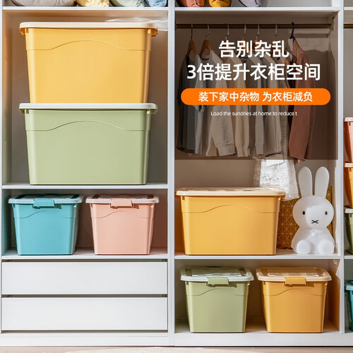 星优加厚收纳箱,带轮多功能整理箱,大容量很能装,装下家中杂物,为衣柜减负,盒盖凹陷,叠加组合使用,便于摆放,节约空间。