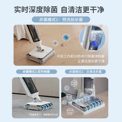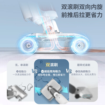 随污渍程度不一样,能够自动调节清洗力度。1800pa大吸力,双风道干湿分离,在有效吸走污渍同时,降低能耗噪音。