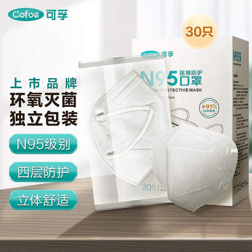 可孚N95型医用防护口罩,四层防护,侧面弧线提拉设计,收紧下颌轮廓,侧颜也漂亮,戴上就是小V脸。4D口鼻设计,不沾口红,不刮妆容。