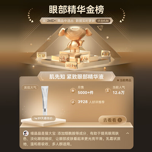 添加烟酰胺等成分,有助于提亮眼周肤色,淡化眼部细纹,让眼部皮肤看起来更光亮平滑。乳霜状质地,温和易吸收,多人群适用。