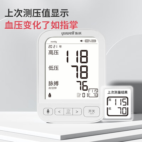 从一键开机到测量结果分析,全程语音播报,锂电池充电,充满一次电,可测3个月,避免频繁拆装电池。自动显示上次测量值,方便对比。