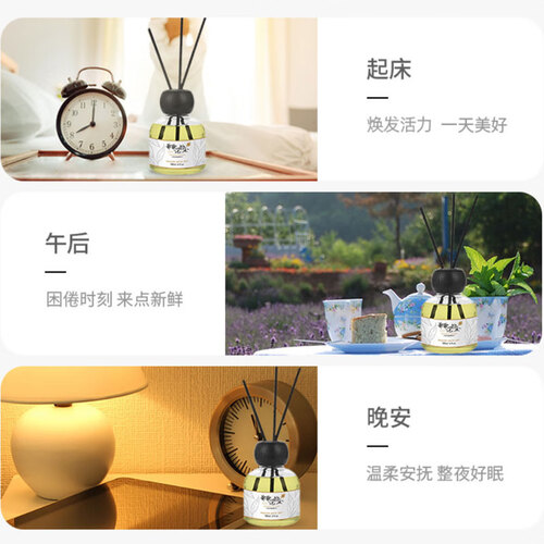 通透的玻璃瓶身与纤维藤条棒相结合,将精油的香气慢慢散发出来,居家使用不仅安全,香气还纯正自然不刺鼻,带来精致的居家生活。