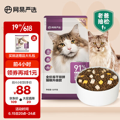 采用鸡鸭牛鱼蛋奶搭配无谷低敏配方,补充优质动物蛋白,食用后易于肠胃吸收和消化。额外添加3%冻干颗粒,丰富口味,且能健体美毛。