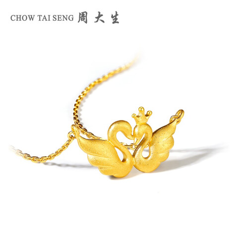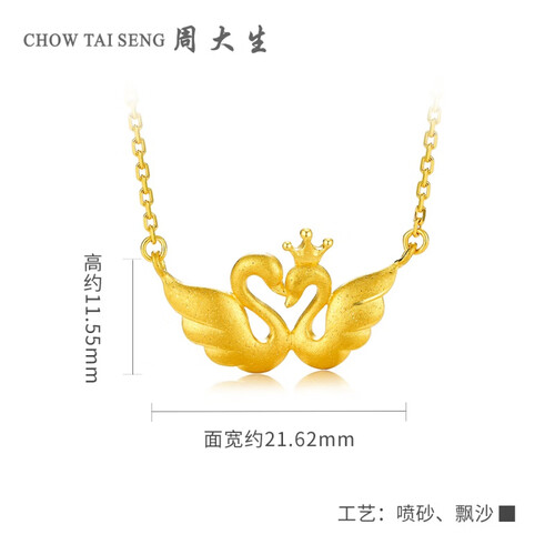 甄选上等的金料打造,整体色泽亮丽大方,佩戴可以提高你的优雅气质。吊坠采用喷砂和飘沙技艺,天鹅图案生动,触感细腻,佩戴舒适。