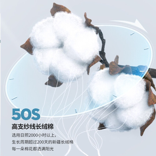 甄选优质新疆长绒棉材质制作而成,纤维柔长,弹力出色,亲肤不致敏。搭载荷叶膜防污黑科技,防水防污,穿着不易弄脏,好打理。