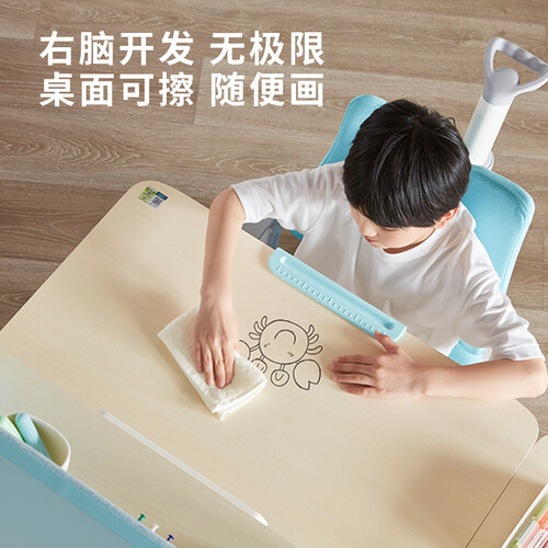 SACS三角稳固倾斜系统,多种角度适合多种学习场景,儿童使用不费力。桌面可擦,随便画,便于开发右脑,打造沉浸式学习系统,