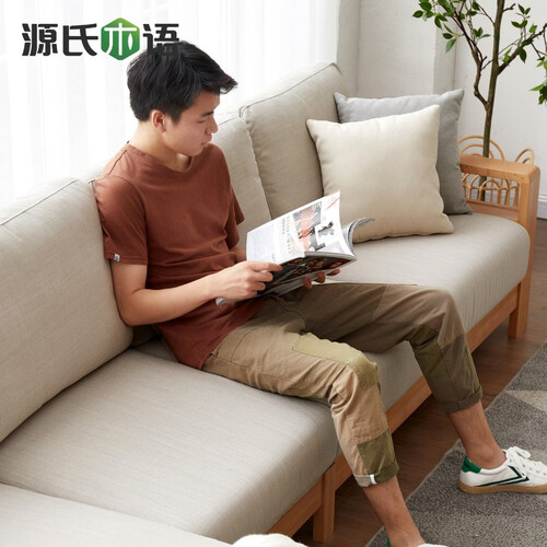 采用欧洲进口山毛榉+高回弹海绵制作的实木沙发,坐感舒适,材质坚硬无甲醛。沙发背后的软包可拆洗,易于清洁打理,非常方便。