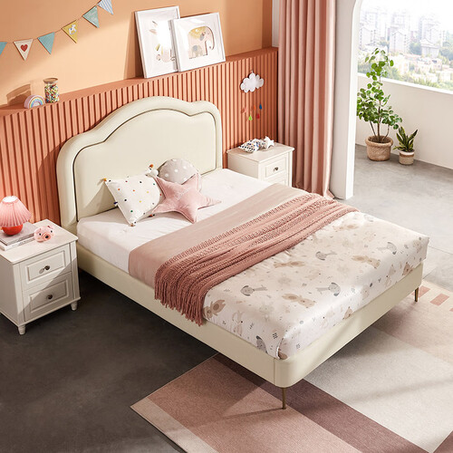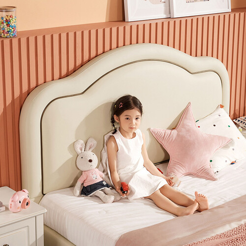 床头采用优质海绵填充,母婴级的硅胶皮,亲肤细腻柔软呵护着娇嫩肌肤,同时防污易清洁。床体的实木框架设计,强有力的稳固支撑。