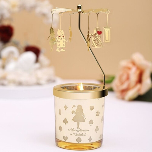 设计巧妙,金色剪影瓶身,旋转走马灯,不用电池,靠蜡烛燃烧产生热空气,让走马灯旋转。柑橘与木调香,香味持久,扩香均匀。