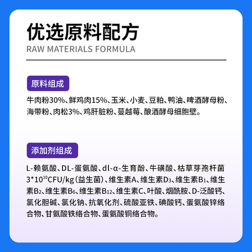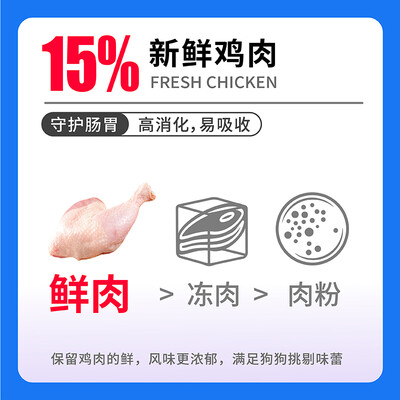 采用高动物性蛋白配方,特别添加益生菌,能够更好地促进狗狗肠道消化。经多道工序匠心制作而成,锁住食材的新鲜和营养,适口性更强。