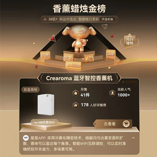采用冷雾化精密技术,细腻均匀出雾发面积扩散,香味可以直达每个角落。智能WIFI互联调控,可以实时准确把控开关省力,多场景可用。