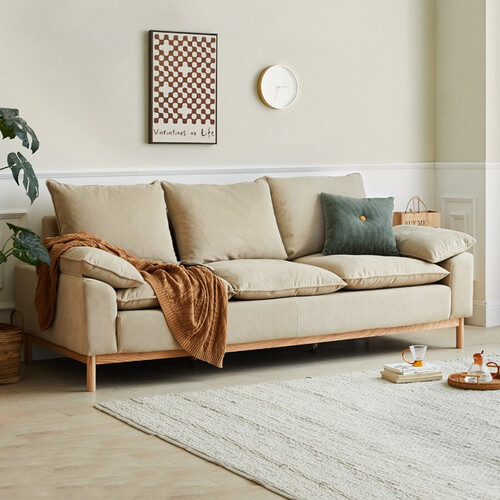 简约却不简单的外观设计,恰好的复古造型。三人位搭配脚蹬,小户型的理想之选。采用有品质的灯芯绒,坐上的瞬间是带温度的,品质显而易见。