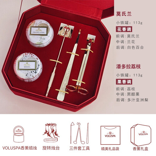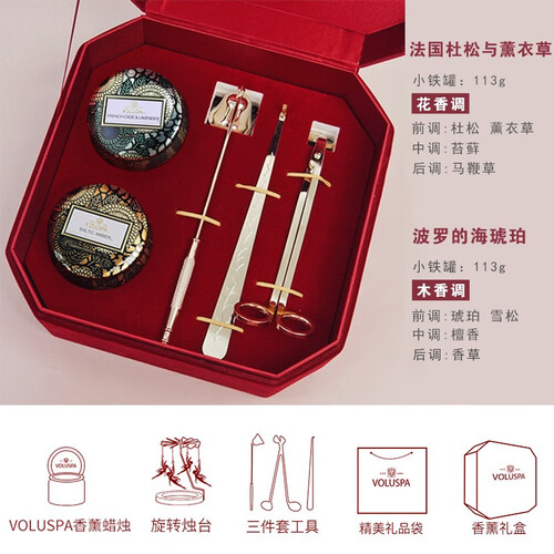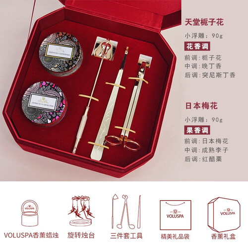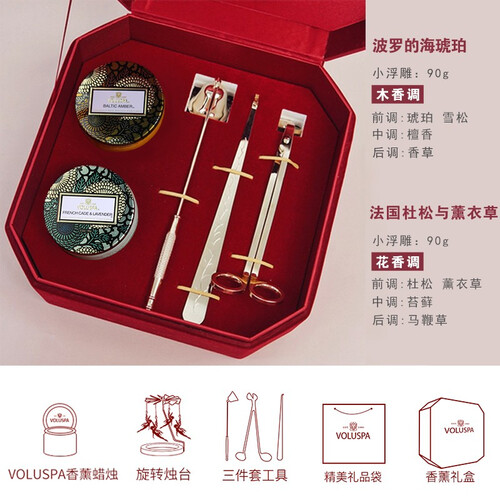 奥斯卡高定伴手礼,Voluspa香薰蜡烛。轻奢高端,尽显奢华,母婴可用,食用级椰子蜡与植物精油安全无害。一物多用,空罐可用于装饰。
