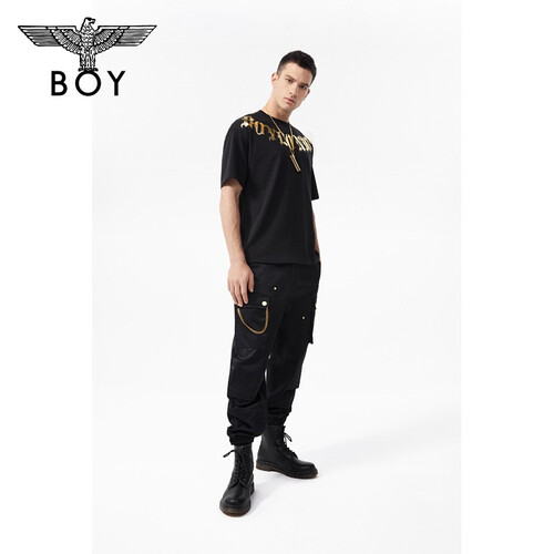 融入烫金图案,亮眼出彩不沉闷,设计感十足,给人耳目一新的感觉,穿着帅气好看。搭配宽松版型,穿着不紧绷不拘束,能包容不同身材。