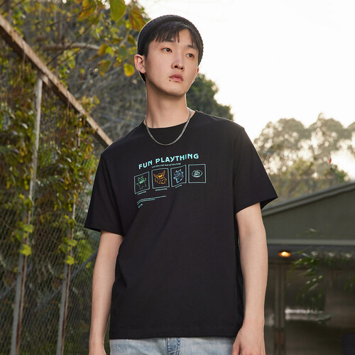 款式简约大方的圆领T恤,采用纯棉材质打造,亲肤好穿更不易闷热。前幅个性的四宫格怪兽印花,加上撞色线条,彰显街头潮酷风范。
