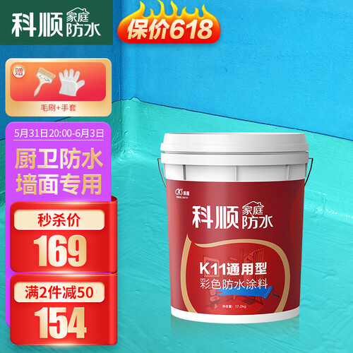 墙面刚性防水涂料,密封效果好,积水不渗透,适合家装使用。而且粘贴力强,无惧磨损,不易脱落。