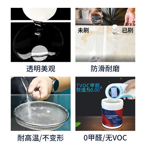 施工后干的迅速稳定,可进行正常的洗澡和拖地。晶莹剔透的材质,高透不影响美观。坚固耐用,可轻松补漏,个人使用也快捷。