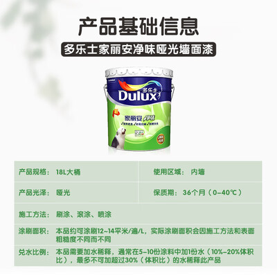 采用净味配方,VOC含量符合国家标准,未检测出甲醛、苯等有害物。此款油漆具有出色的附着力与遮盖力,实力遮盖细微裂纹。