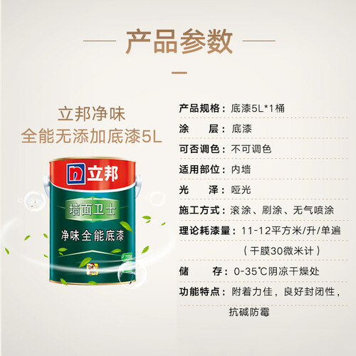 选用环保的原料,未添加有害物质,令气味更清新,且强大功效的底漆,墙面效果更佳,有效提高面漆附着力,增加面漆丰满度。