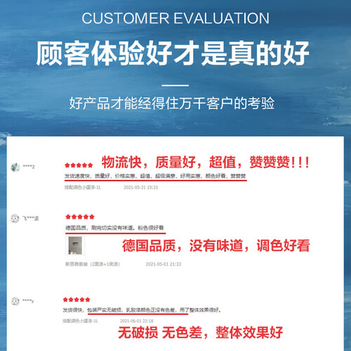 这款乳胶漆气味十分清淡,涂色均匀,面漆吸附力强,抗碱效果佳,更好的保护墙面。