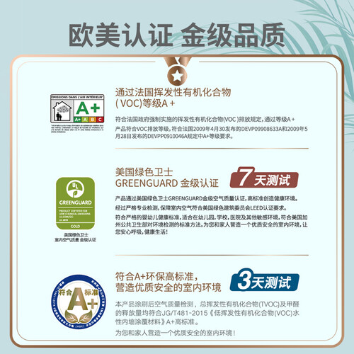 精选优质原料,进一步进行提纯,低气味更清新。漆膜细腻,免受潮湿破坏,耐洗刷,长久亮白。