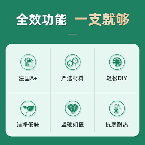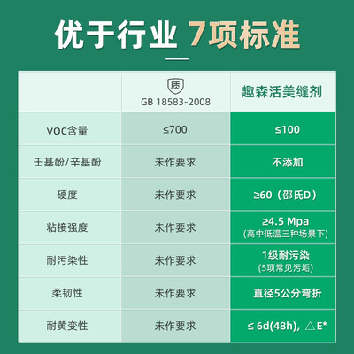 升级配方,具有出色的防霉性,有效防止美缝滋生霉菌,干净无忧。高粘结力,久用不脱落。