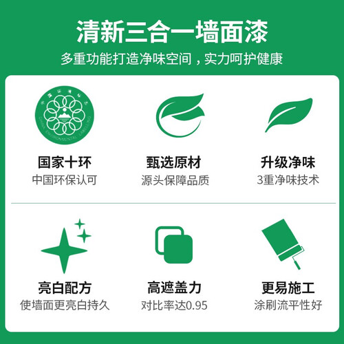 这是一款水性净味油漆,具有出色的防护性能,减少了甲醛、异味滋生,还搭载了三重净味科技,生活环境更加健康。