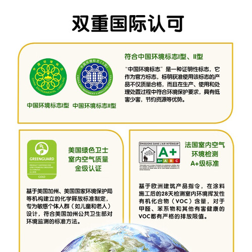 拥有法国A+与美国UL的双重环保认证,使用更加安心,没有甲醛、苯、VOC,非常适合着急入住新家的家庭使用。