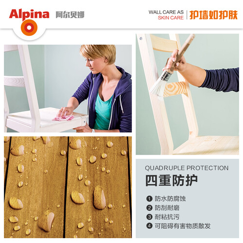 获得德国蓝天使认证,同时也满足欧盟儿童玩具安全标准,即使家中有孕妇也可放心使用;涂刷后防水性能佳,能有效的保护家具。