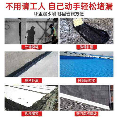 适用屋顶防水和补漏的涂料,采用环保乳液的水性涂料,防霉抗碱,而且不需要加水稀释,开桶就可用,使用方便省心。