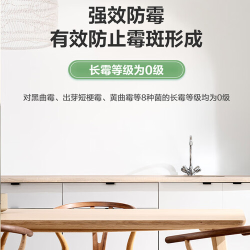 这款油漆采用天然活性竹炭因子和高效除醛科技,达到了抗甲醛和净味的效果。致密的漆膜,抗污防霉,将墙上细纹一扫而光。