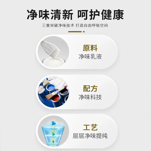 0级防霉效果,强力防霉,墙壁不易滋生霉菌,无需反复施工涂刷;三重净味技术,短时间通风便可以放心入住。