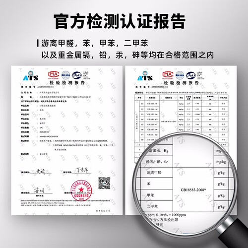 经过环保认证,甲醛、苯等都会在合格的范围之中,家庭使用更安心。采用高密度的原料,持久防水防霉,保持靓丽。