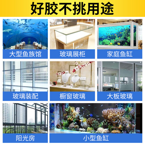 水族缸专用玻璃胶,强力粘合,使用不伤鱼卵,安全健康。玻璃胶干后有很好的韧性,能承受结构移动反应力量。