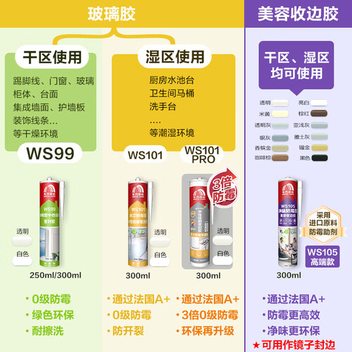 中性固化无腐蚀,适用于陶瓷、大理石、不锈钢、玻璃等复杂基面。防水防渗透,密封性持久,0甲醛添加,使用起来更放心。