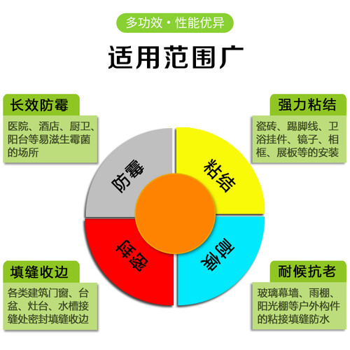 一支胶水在手,家居里里外外通用,长效防水防霉无烦恼。中性的选材,不会腐蚀家具,让你用得更加放心。