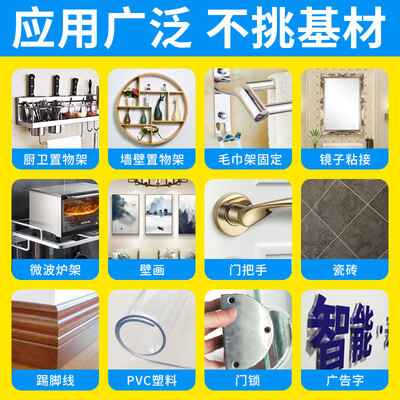 优选材质打造的胶水,品质更优承重效果更好。涂抹顺滑方便,可以更好的粘住物体,且防水抗裂,满足户外使用。