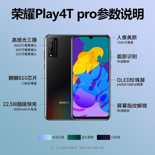 搭载麒麟810芯片,畅玩游戏不卡顿,低功耗发热少。3D轻薄机身设计,持久持握依然舒适。