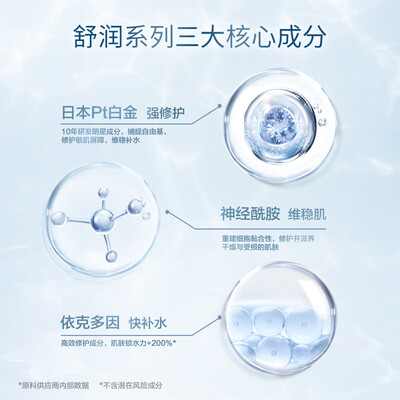 特含日本Pt白金,强力修护受损的肌肤屏障,结合神经酰胺和依克多因,有效锁住水分,改善干燥引起的敏感不适,是冬季补水好物。