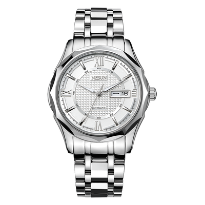 以银色为主体的设计,看似平凡其实不简单,双历的设计更加方便生活与工作,比较适合商务人士佩戴,尽显简约利落之范。