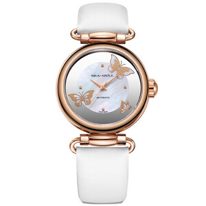 盘面饰以蝴蝶元素点缀,画面栩栩如生,释放出温柔知性魅力。绢带表身设计,经典不失时尚品位。